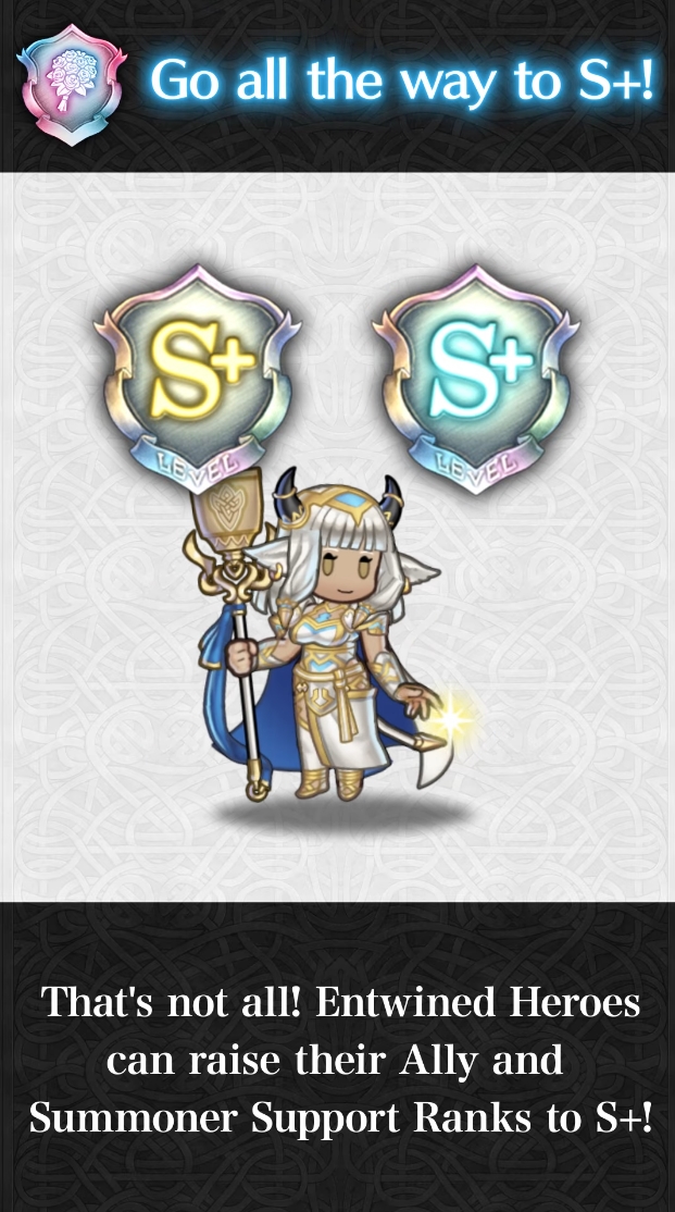 - Besitzt der Treueheld mit einem Nicht-Treuehelden eine Verbündetenhilfe auf Rang S+, erhalten beide Charaktere diesen Bonus.
