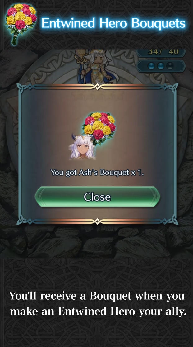 Beim Beschwören eines Treuehelden erhält man ein Bouqet.